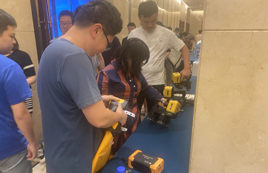 5月14日,濟寧魯科檢測器材有限公司無線式磁粉探傷儀、管道磁粉探傷儀、角焊縫磁粉探傷儀、腐蝕測厚機器人等儀器亮相重慶市機械工程學會無損檢測分會2024年會員大會。