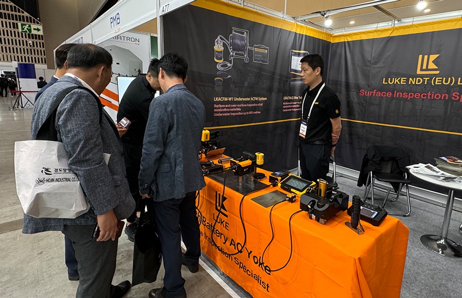 濟寧魯科聯(lián)合中國石油大學(xué)(華東)共同研發(fā)的新一代LKACFM-X2交流電磁場檢測儀首次亮相,該儀器為超小型設(shè)計,探頭連接主機即可實現(xiàn)所有導(dǎo)電體材料表面、近表面缺陷檢出,大幅降低作業(yè)人員工作強度提高工作效率。同時亮相2024世界無損檢測大會的還有濟寧魯科自主研發(fā)的無線式磁粉探傷儀、管道磁粉探傷儀、角焊縫磁粉探傷儀、腐蝕測厚機器人等,儀器一經(jīng)展出,便引起國際友人廣泛關(guān)注與一致好評。
